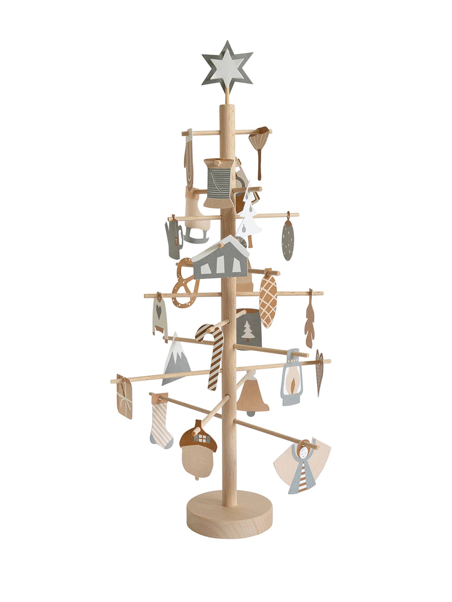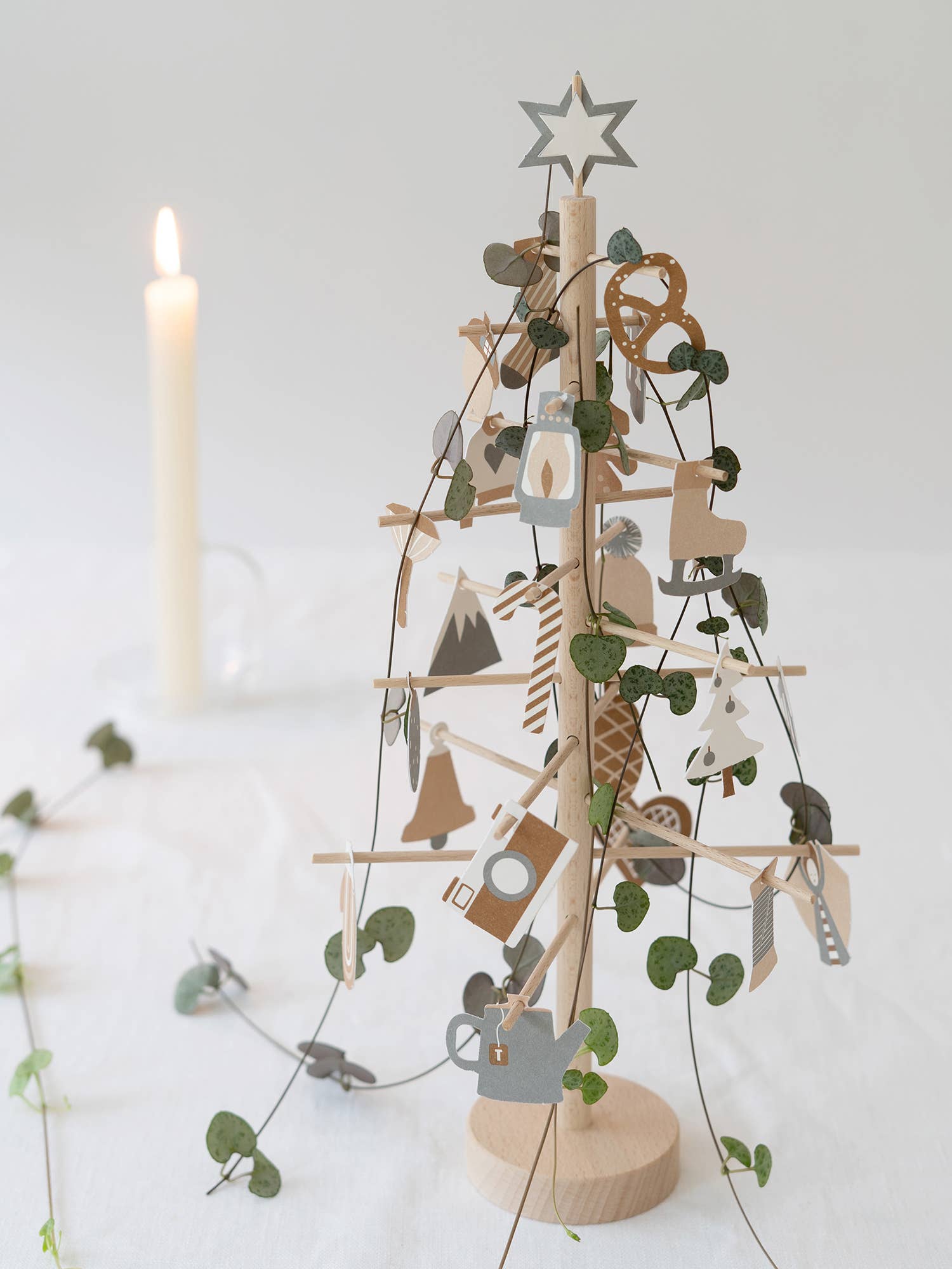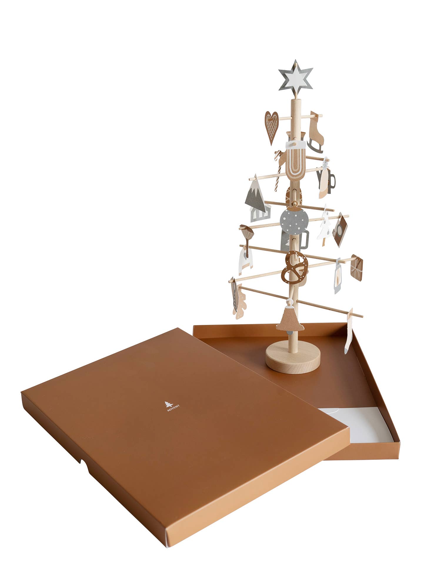 Nehmen Sie sich ab dem 1. Dezember jeden Tag ein paar Minuten Zeit für ein kleines Ritual. Wählen Sie ein Ornament aus und hängen Sie es in den Baum. Es gibt 24 Ornamente, sodass der Baum bis Weihnachten voll sein wird und am Weihnachtstag können Sie den Baum mit dem Stern krönen.