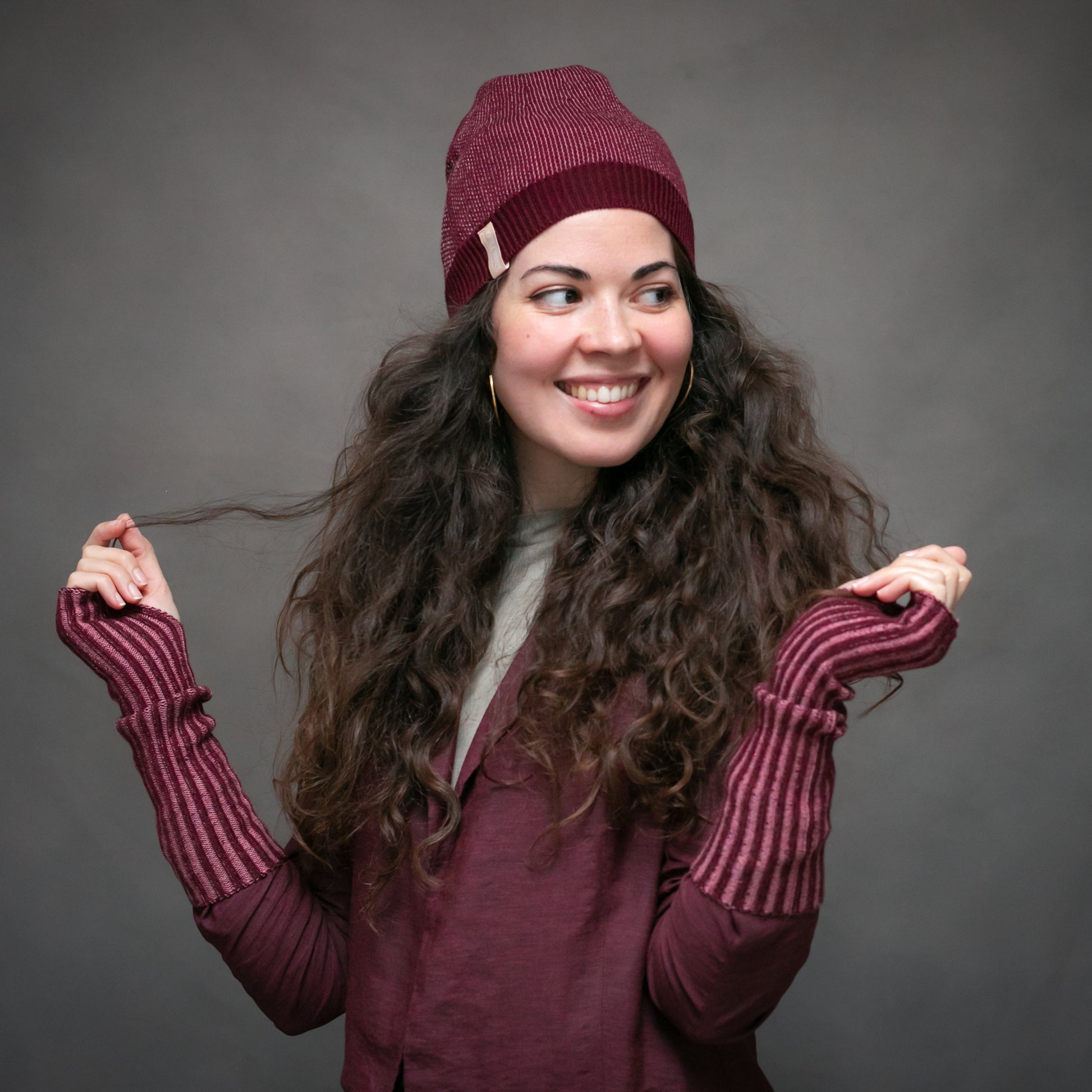 Beanie reversibel aus 100% Merinowolle in zwei Farben.