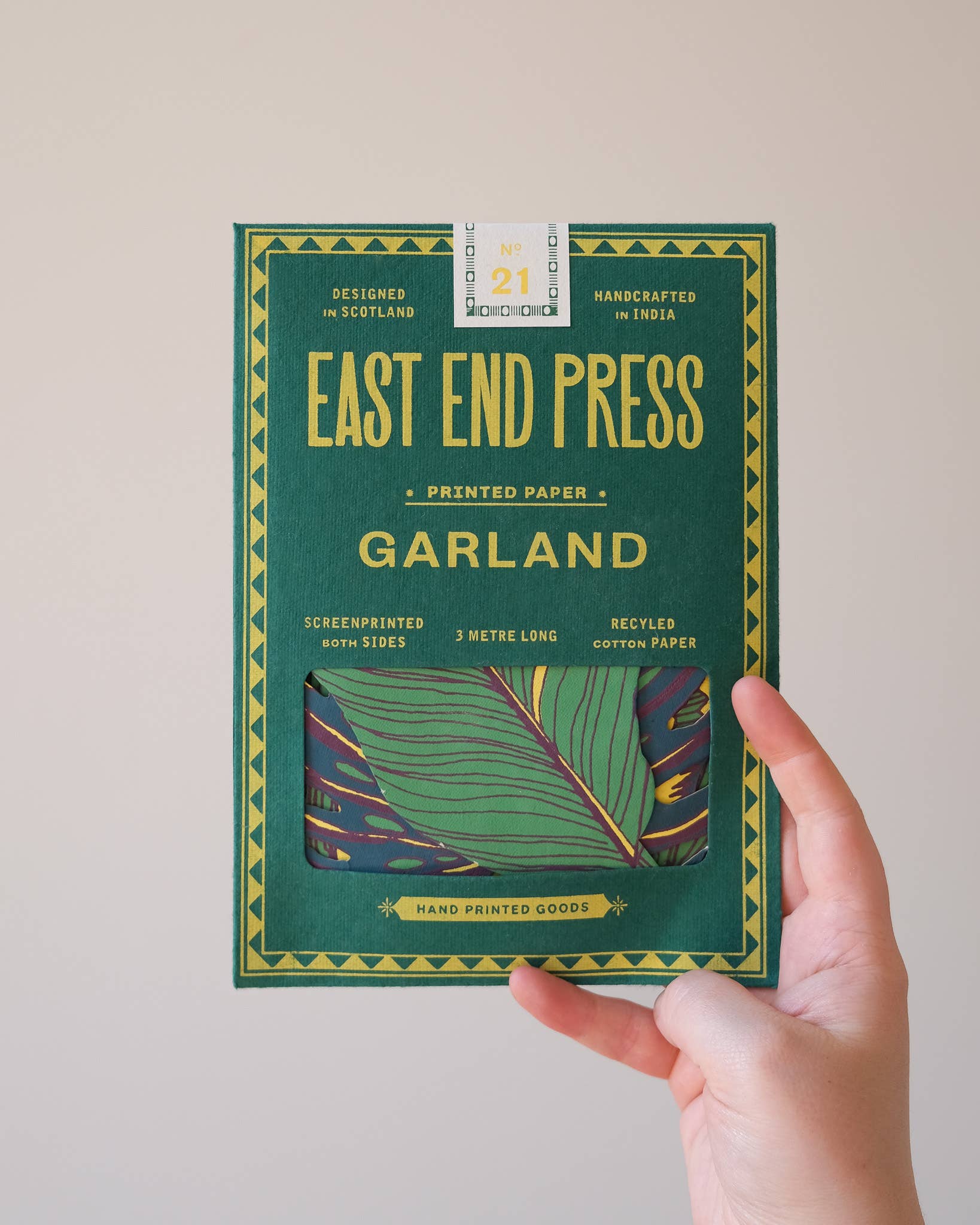 3 Meter lang - Enthält 10 Papierformen, die entlang eines starken Baumwollfadens genäht sind - Beidseitiger Siebdruck von talentierten Handwerkern in Jaipur - Nachhaltig aus recycelten Materialien hergestellt