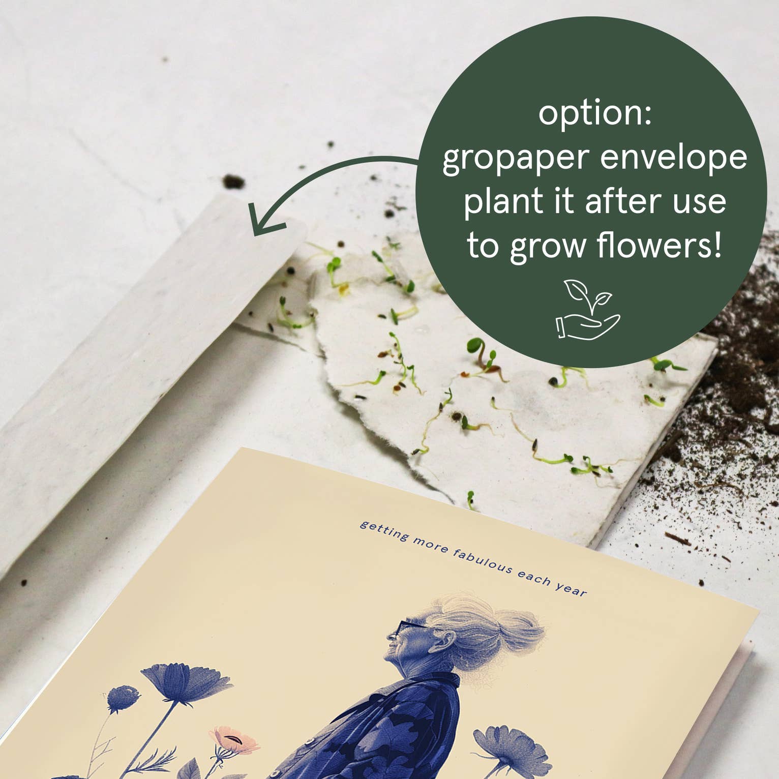 Feiere Stil, Selbstbewusstsein und zeitlose Eleganz mit dieser besonderen Geburtstagskarte „Getting more fabulous each year“. Die stilvolle Illustration einer modischen, älteren Frau, umgeben von einem floralen Arrangement, macht diese Karte zu einem echten Hingucker.