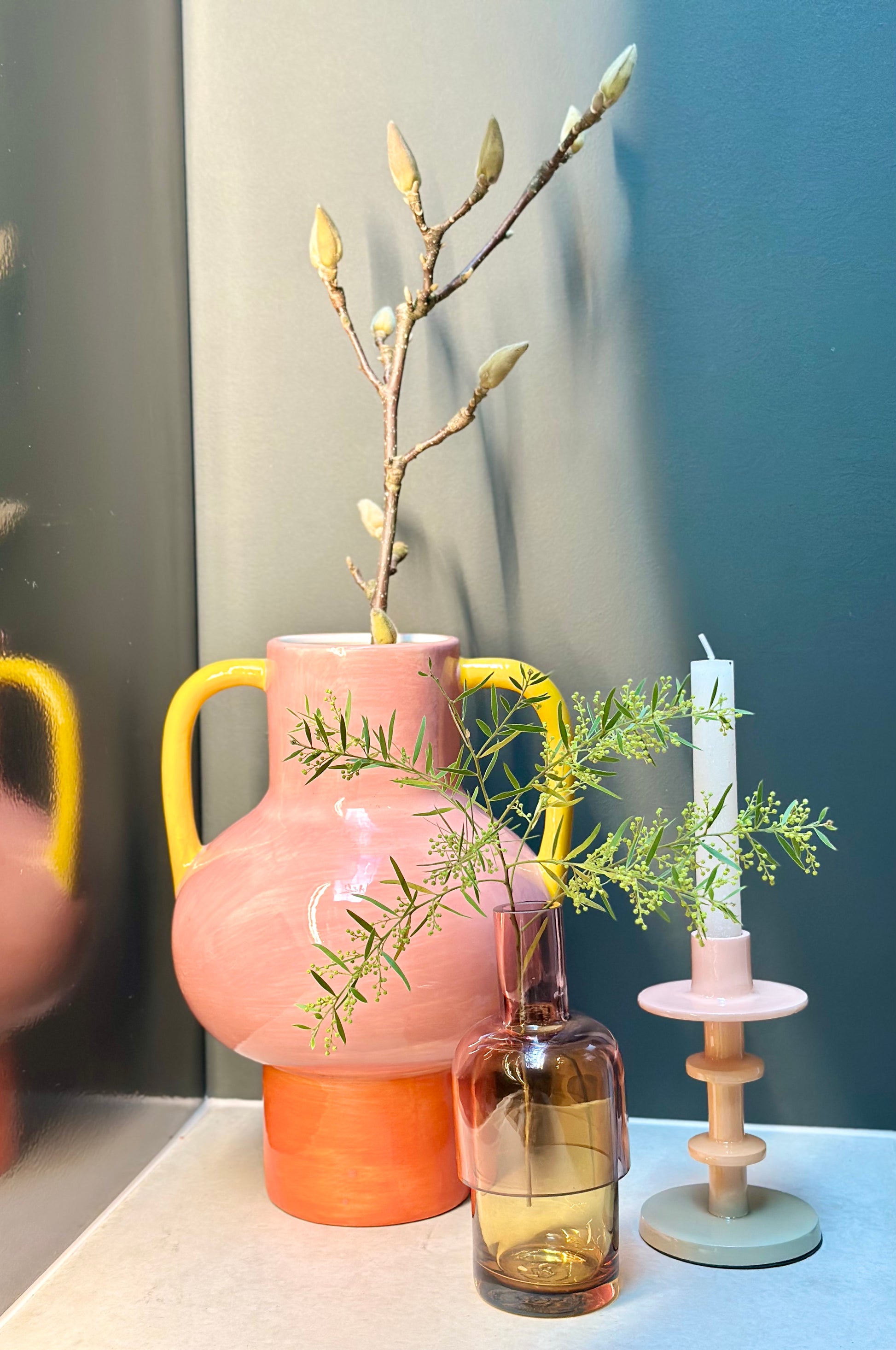 Der pastellfarbene Kerzenständer lässt dich von Sommerabenden auf der Terrasse träumen. Die fröhlichen Farben bringen Frühling in jede Deko. Der Kerzenständer aus Metall hat einen leichten Glanz und ist ideal mit handelsüblichen Stabkerzen.