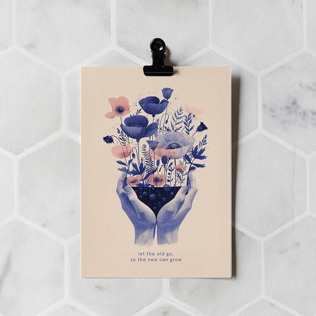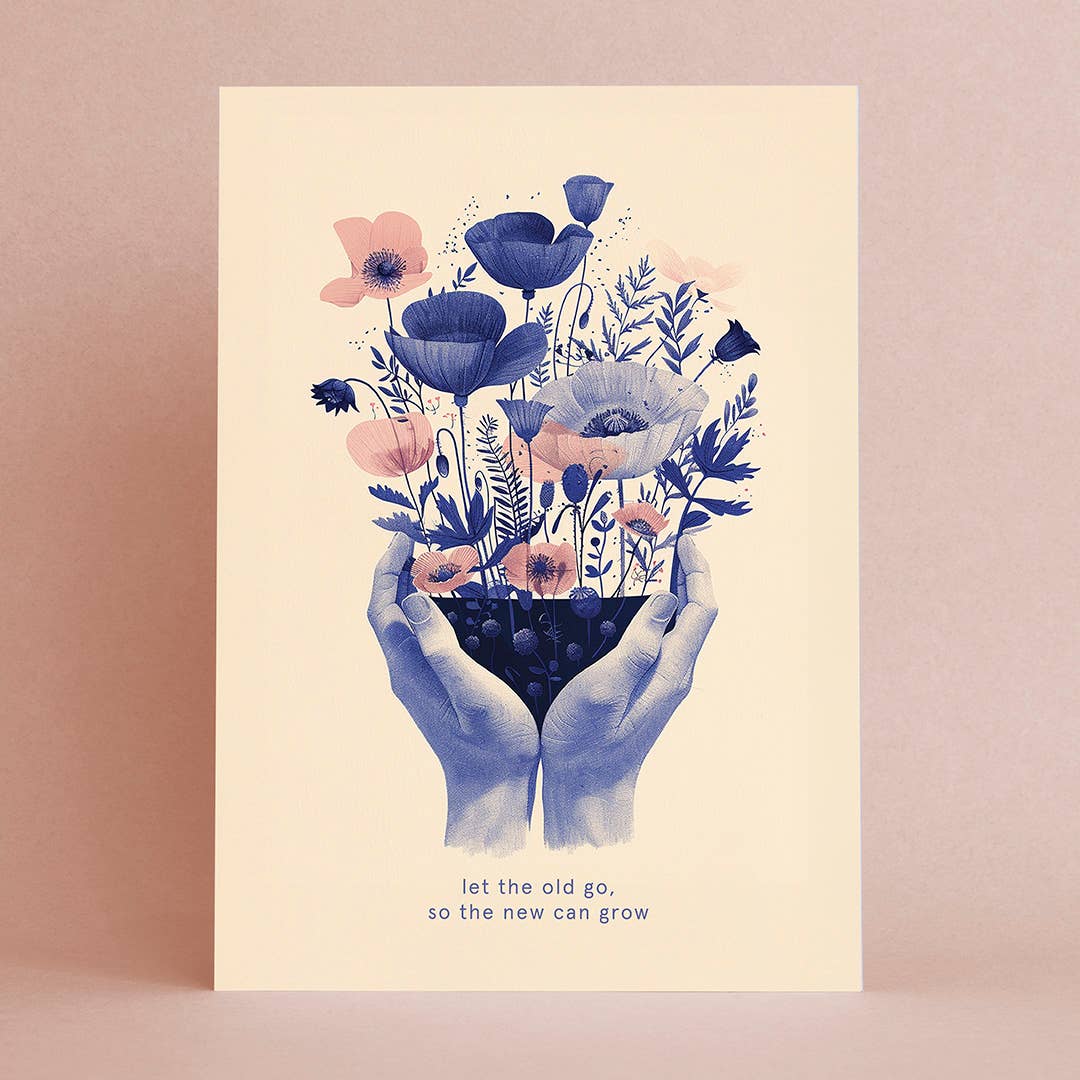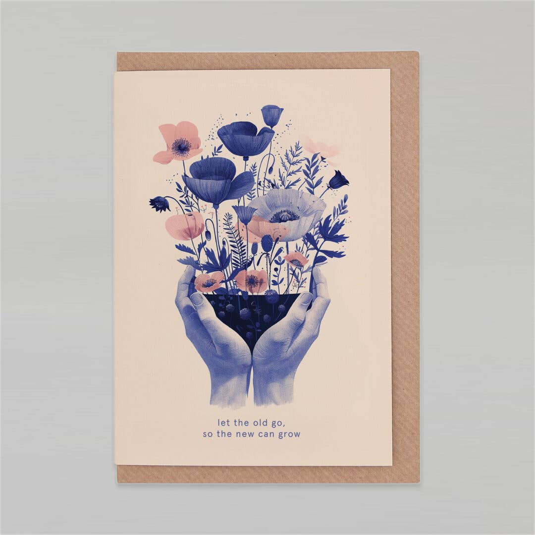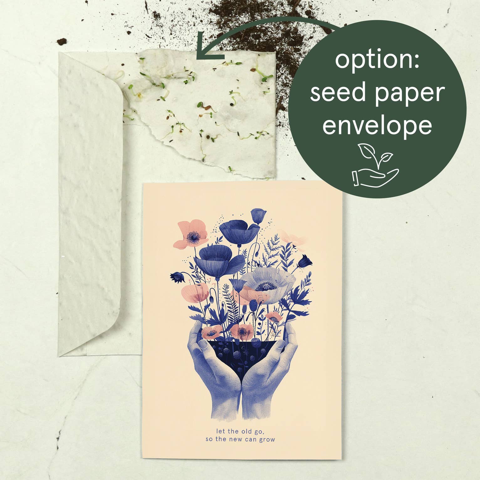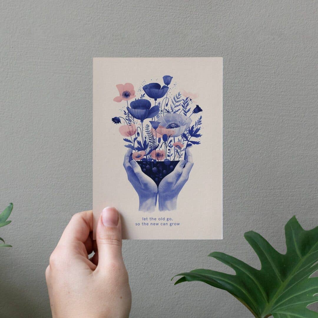 Aufmunterungskarte „Lass Altes los, damit Neues wachsen kann“ – Inspirierende Grusskarte (A6)