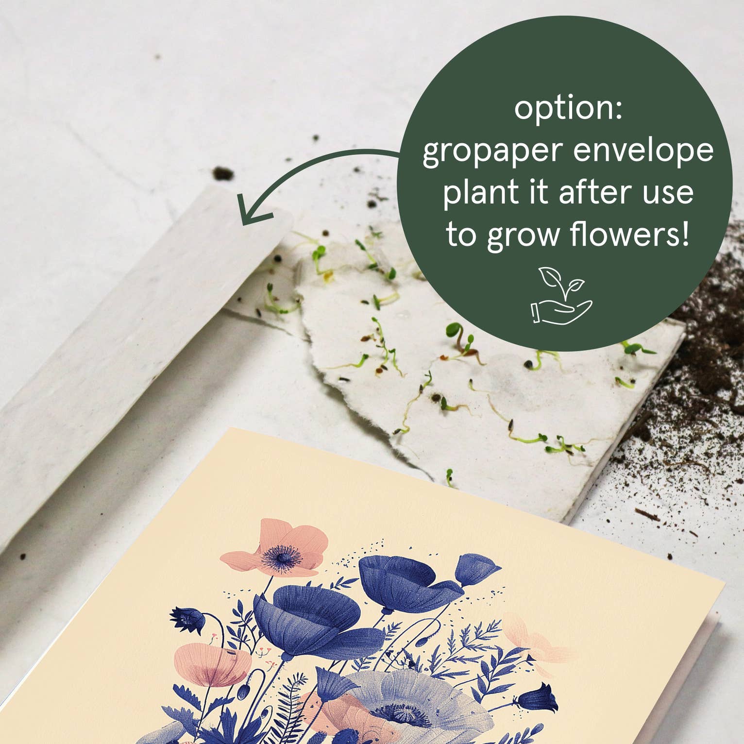 Diese einfühlsame Aufmunterungskarte vermittelt Hoffnung, Mut und Zuversicht. Das ruhige Motiv zeigt Hände, die zart wachsende Blumen halten – ein starkes Symbol für Neuanfang, Wachstum und Veränderung.