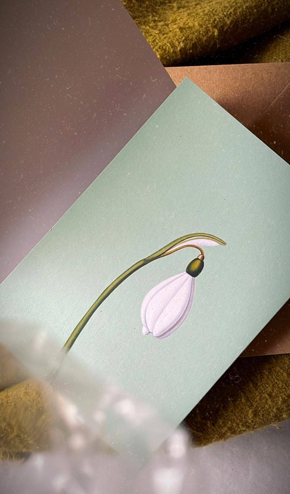 Lokal gedruckt auf glattem, 300 g/m² Recyclingpapier, verpackt mit einem Kraftumschlag in einem klaren Zellobeutel, Karte innen blanko, gedruckt in Deutschland. 10,7 cm x 15,2 cm.