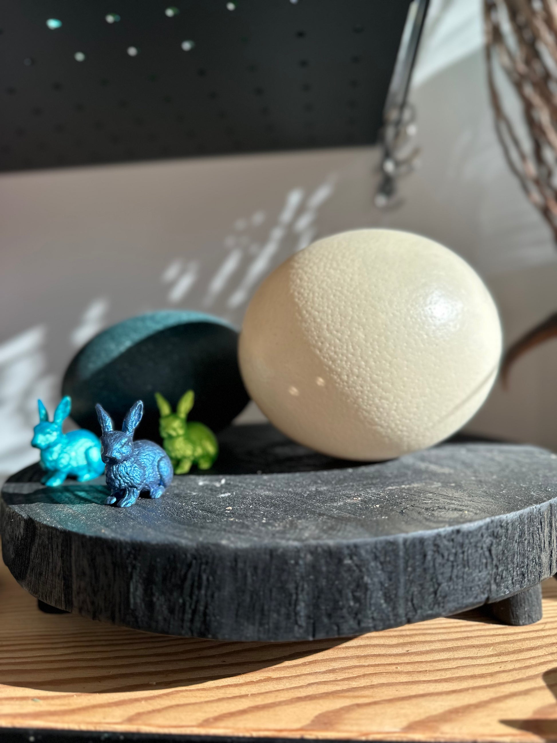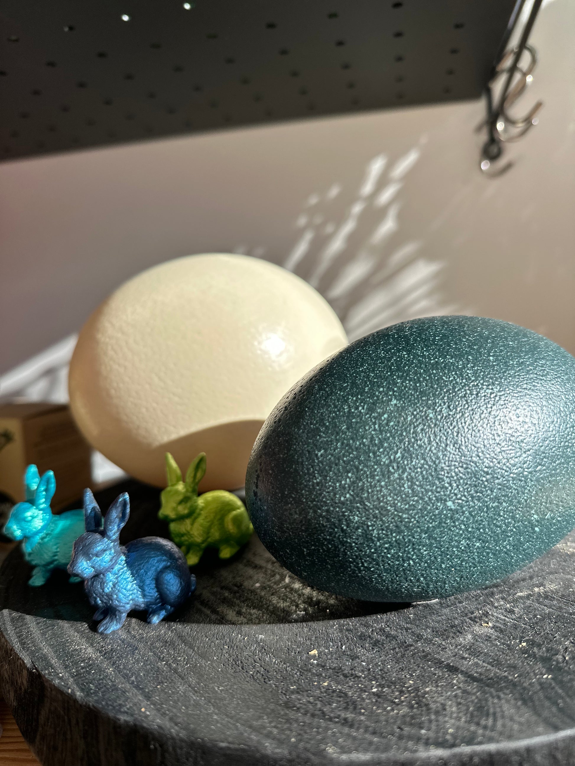 Es ist das grösste Ei zu Ostern - das Straussenei! Dieses Wunder der Natur verdient seinen ganz eigenen Platz, ob in einer schönen Schale oder zusammen mit dem kleineren Freund dem petrol farbigen Emu Ei, es ist ein Hingucker.
