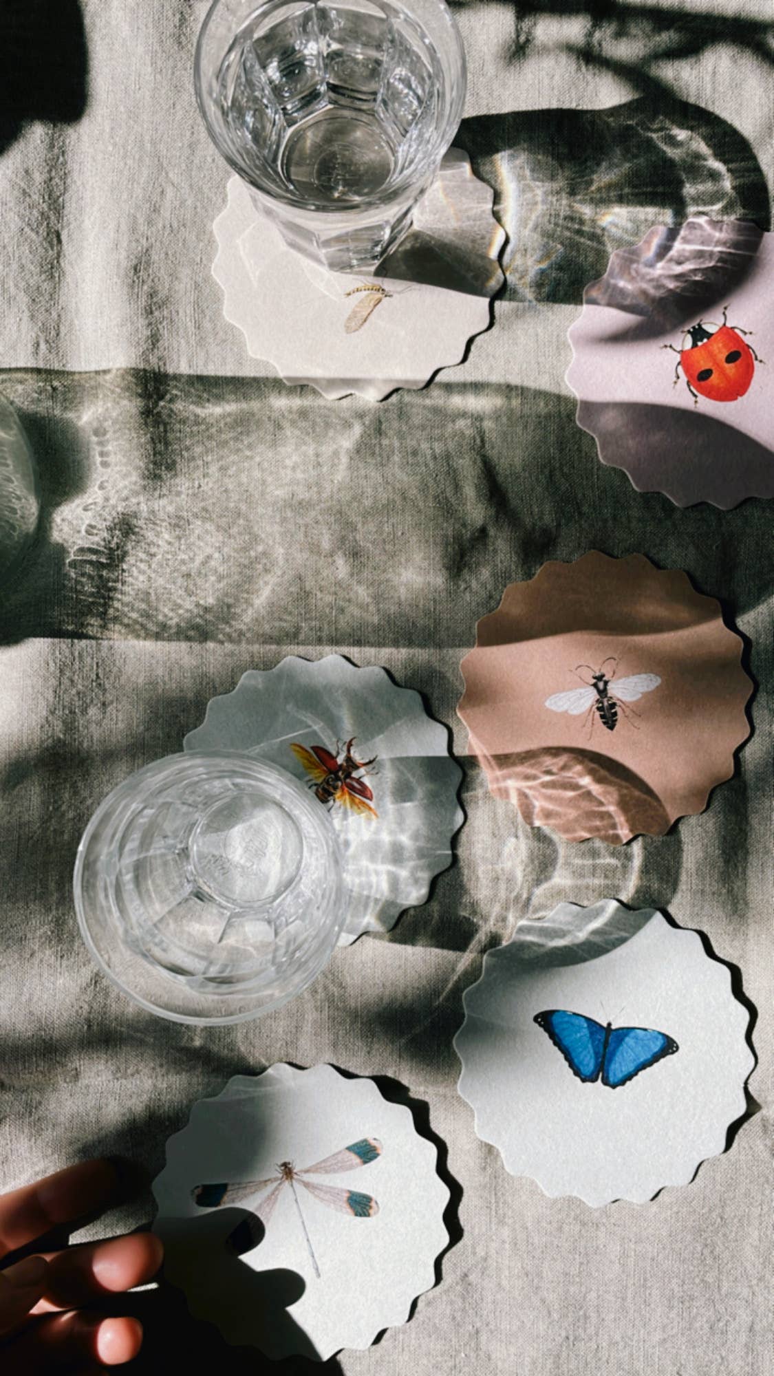 Das Untersetzer Set mit den verschiedenen Insekten Designs, passend für das nächste Picknick im Freien. Jedes Set besteht aus 10 verschiedenen Insekten Design.